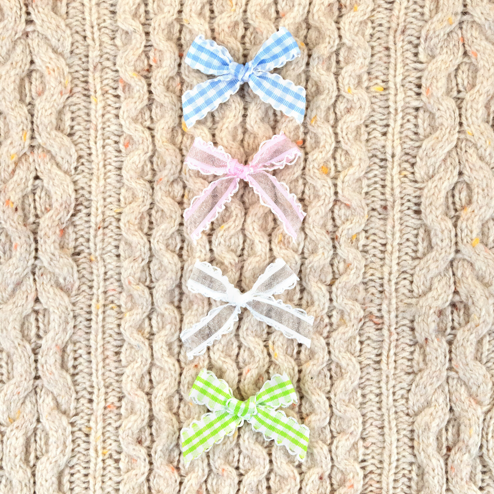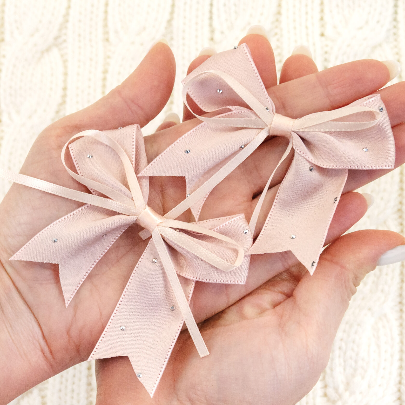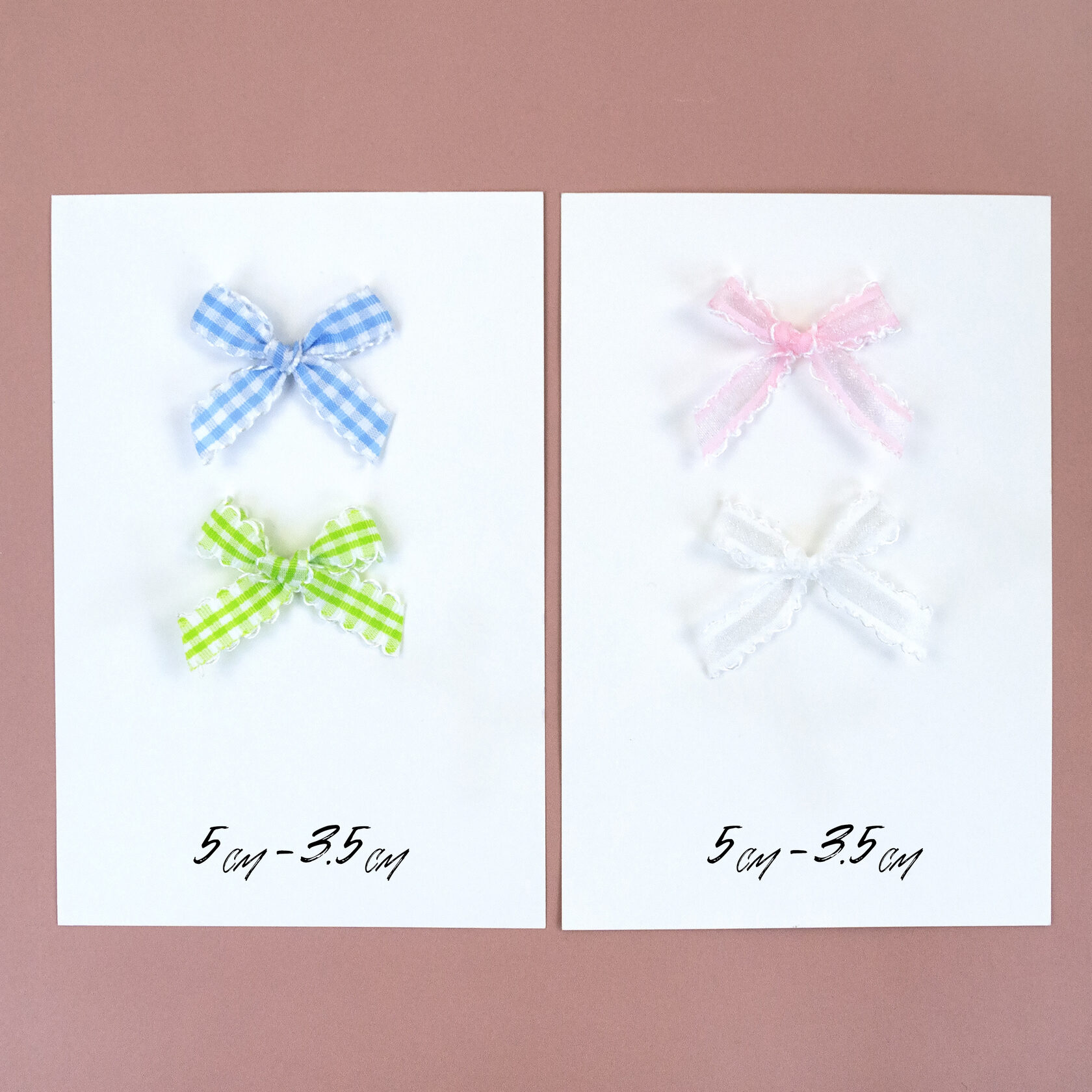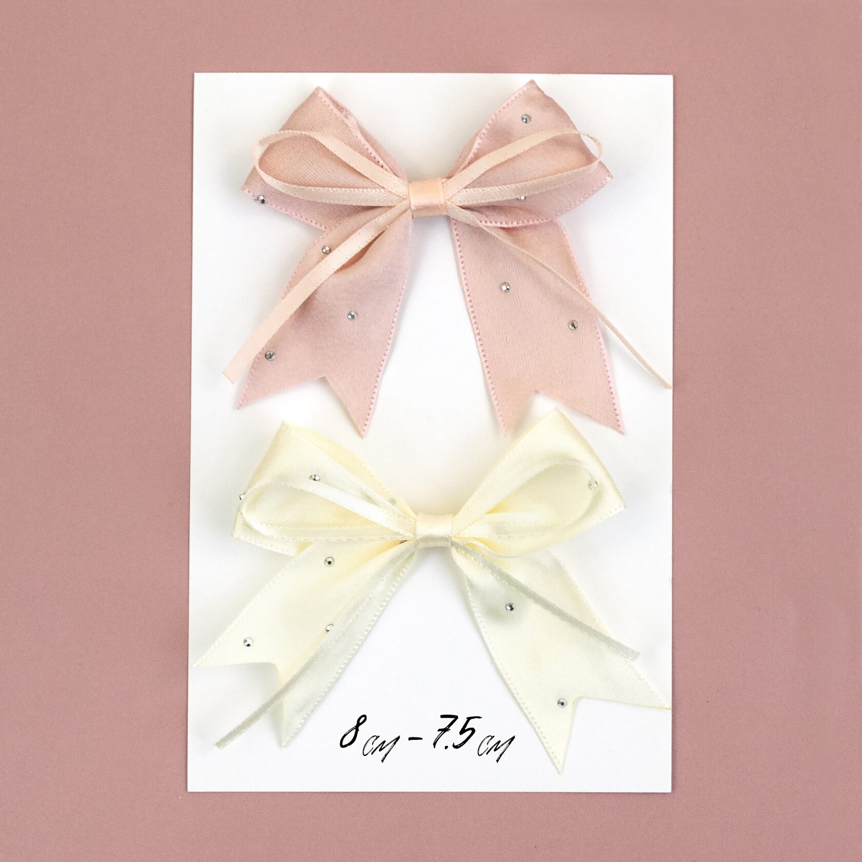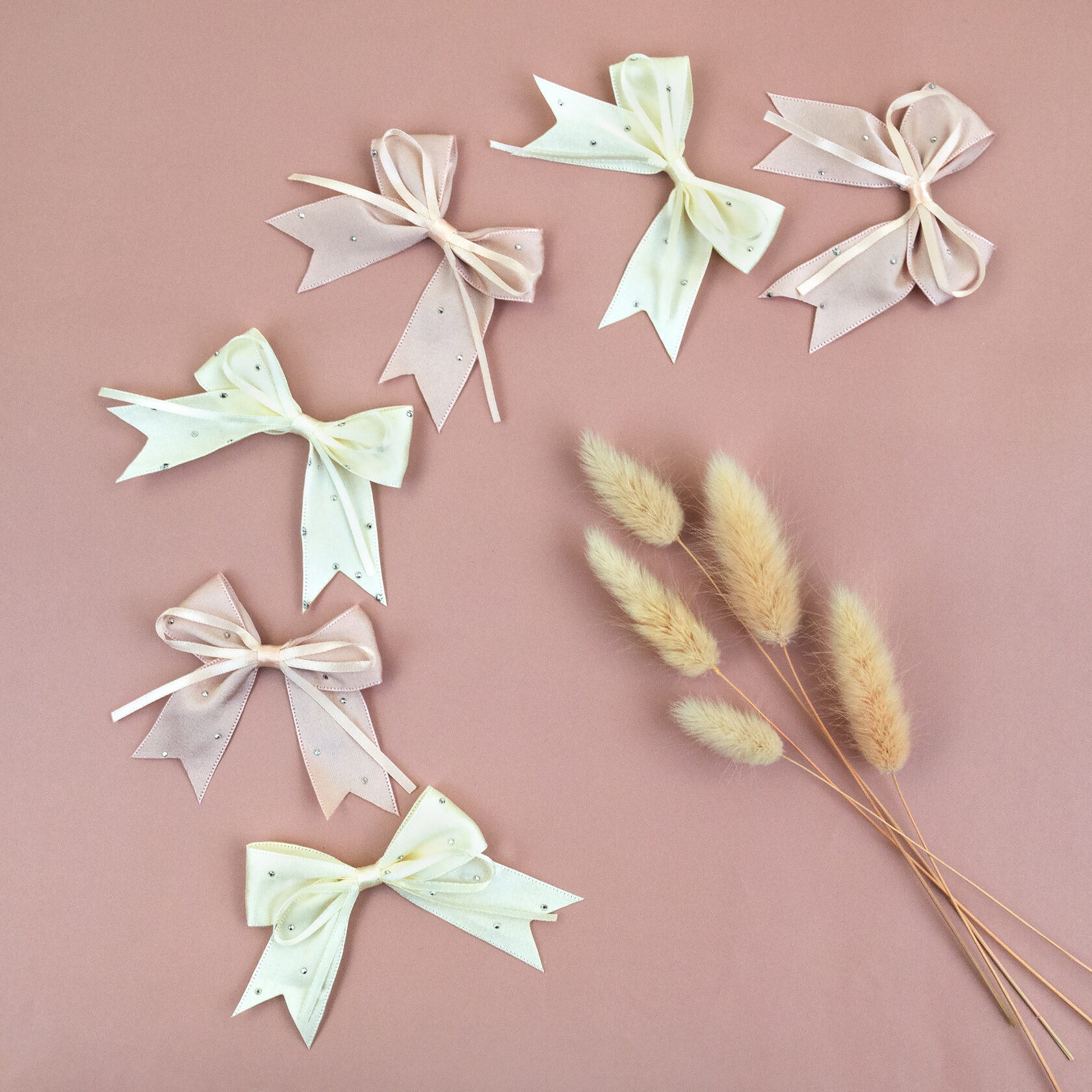 У нас представлен широчайший ассортимент бантиков ручной работы всех цветов, размеров, материалов. Вы можете подобрать нужную текстуру, декорацию бантика и его габариты для украшения своих изделий!