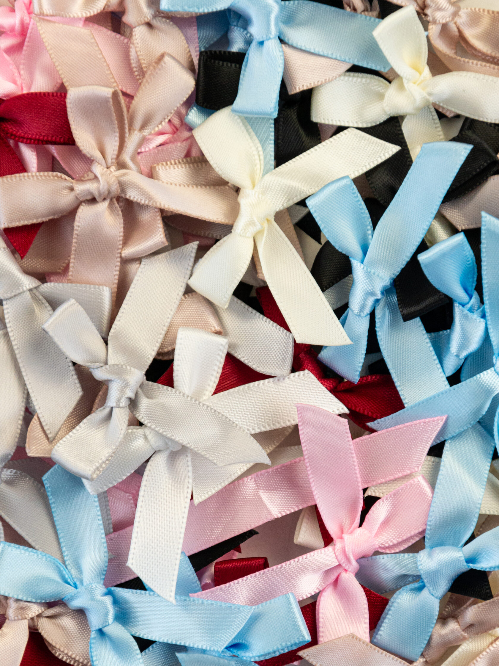 Бантики пришивные оптом по низкой цене от 1.3 рублей для швейных производств, одежды, нижнего белья и аксессуаров